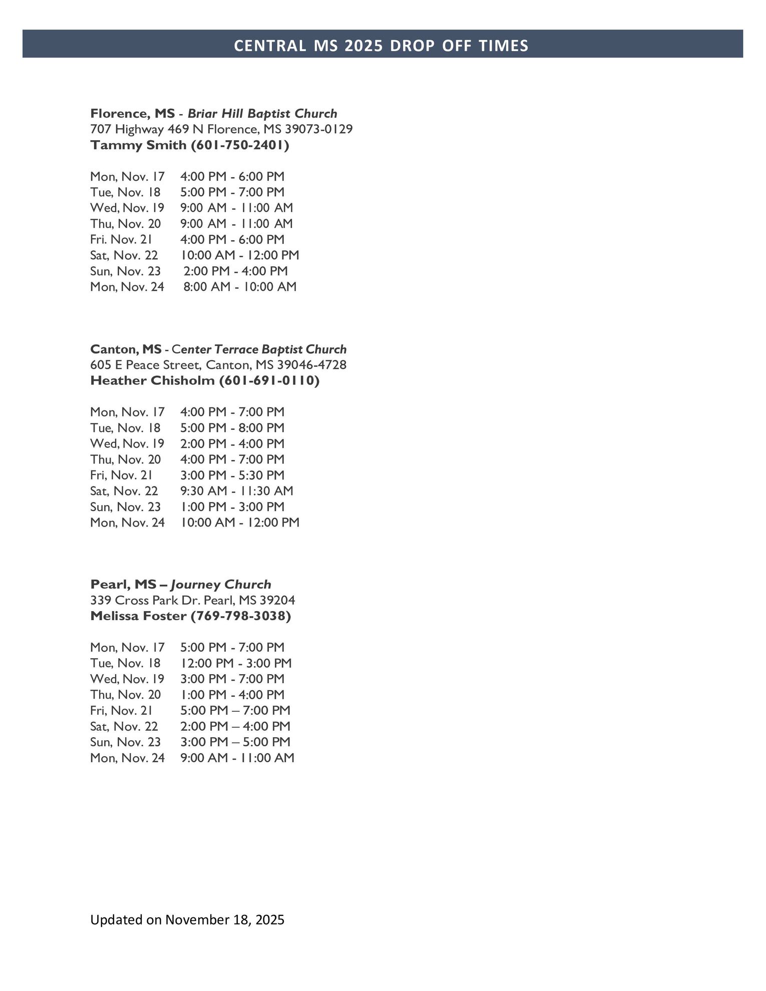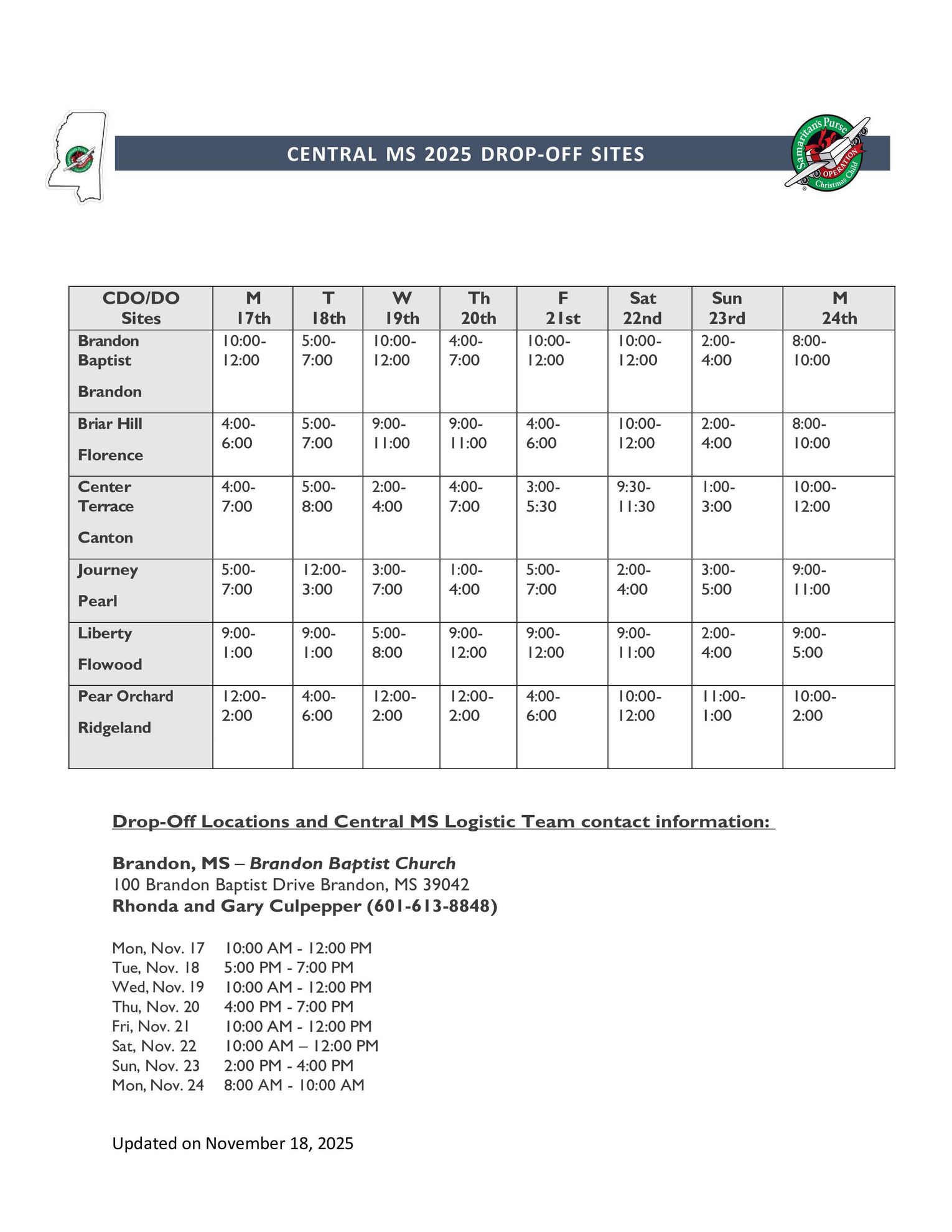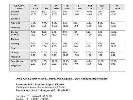• Attached are the nearest drop-off sites with dates and hours of receiving