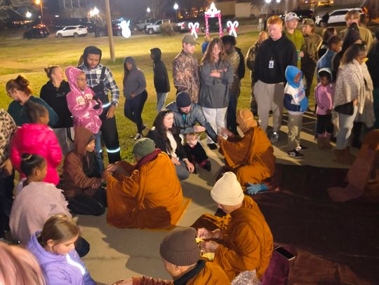The monks entered Mississippi on December 5 and have since traveled through several communities. Earlier in the week, the group gathered at the Mississippi State Capitol in Jackson on Tuesday, where hundreds joined them on the south steps for a large peace gathering. The monks then continued through Pearl on Wednesday before arriving in Pelahatchie.