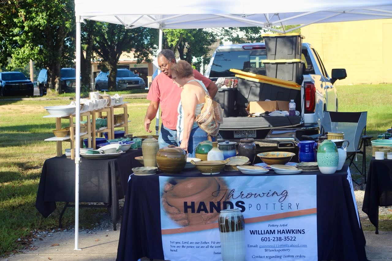 The Pelahatchie Farmer’s Market is excited to have William Hawkins of Throwing Hands Pottery to be a returning vendor. Originally from Las Vegas, Nevada, William discovered his love for pottery during a class he took his freshman year of high school in Lake Oswego, Oregon. What started as a simple class turned into a lifelong passion. He loves the process of taking a simple lump of clay and transforming it into something beautiful, functional, and artistic. William lives in Ridgeland and has been married to his wife Myrtis for 14 years, and they have two daughters. When he’s not creating pottery, William also serves the community through his work in code enforcement in Madison County. Be sure to stop by William’s booth at the market to see his handcrafted pottery and support a talented local artisan.